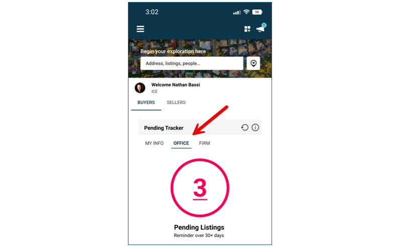 iii. If you are a broker or manager, the widget will default to the Office tab, allowing you to view pending tracker alerts for your office.