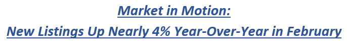 - New Listings increased by 3.6% from 8,224 to 8,516 Year-Over-Year (YOY). New Listings increased from 8,410 Month-Over-Month (MOM), an increase of 1.3%.