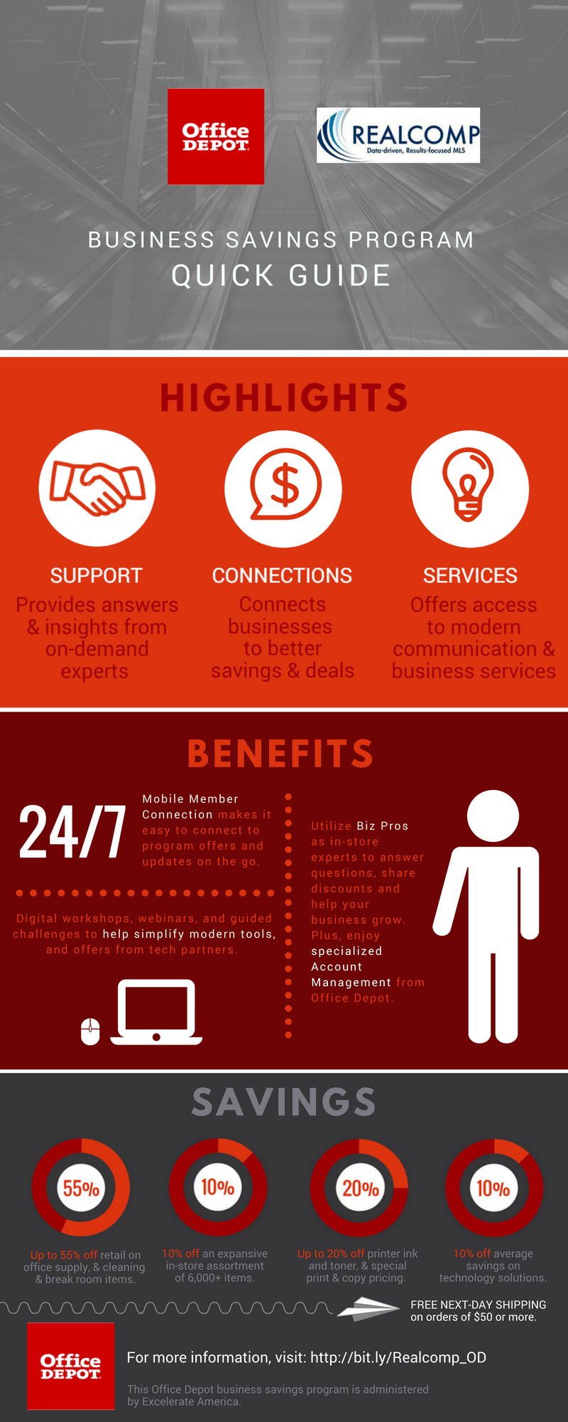 |  Try the Business Discount program with Office Depot/Office Max, from which Realcomp Subscribers can now benefit! Be sure to register for an account through Realcomp's portal to take advantage of the substantial discounts. Our partnership with Office Depot means big discounts and conveniences for groups like ours. Program Benefits Include: -